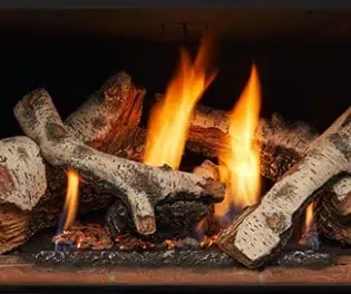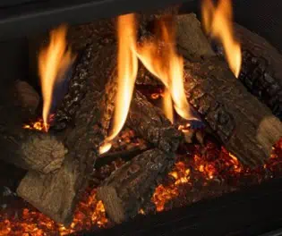 - Patent-pending burner wraps the flames around realistic hand-painted logs