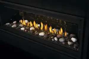 Photo 2: Ascent BL56 with topaz glass embers, mineral rock kit, porcelain reflective panels, and standard safety barrier