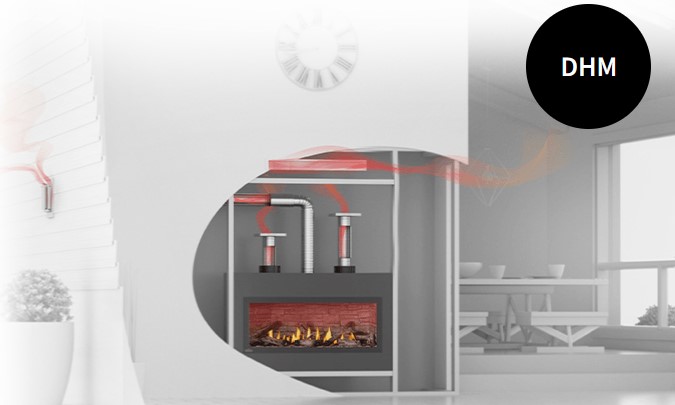 Ducted Heat Management: Silent passive heat management with no fans drastically reduces the temperature above the fireplace allowing for closer installation of electronics or artwork. Front or side heat discharge.